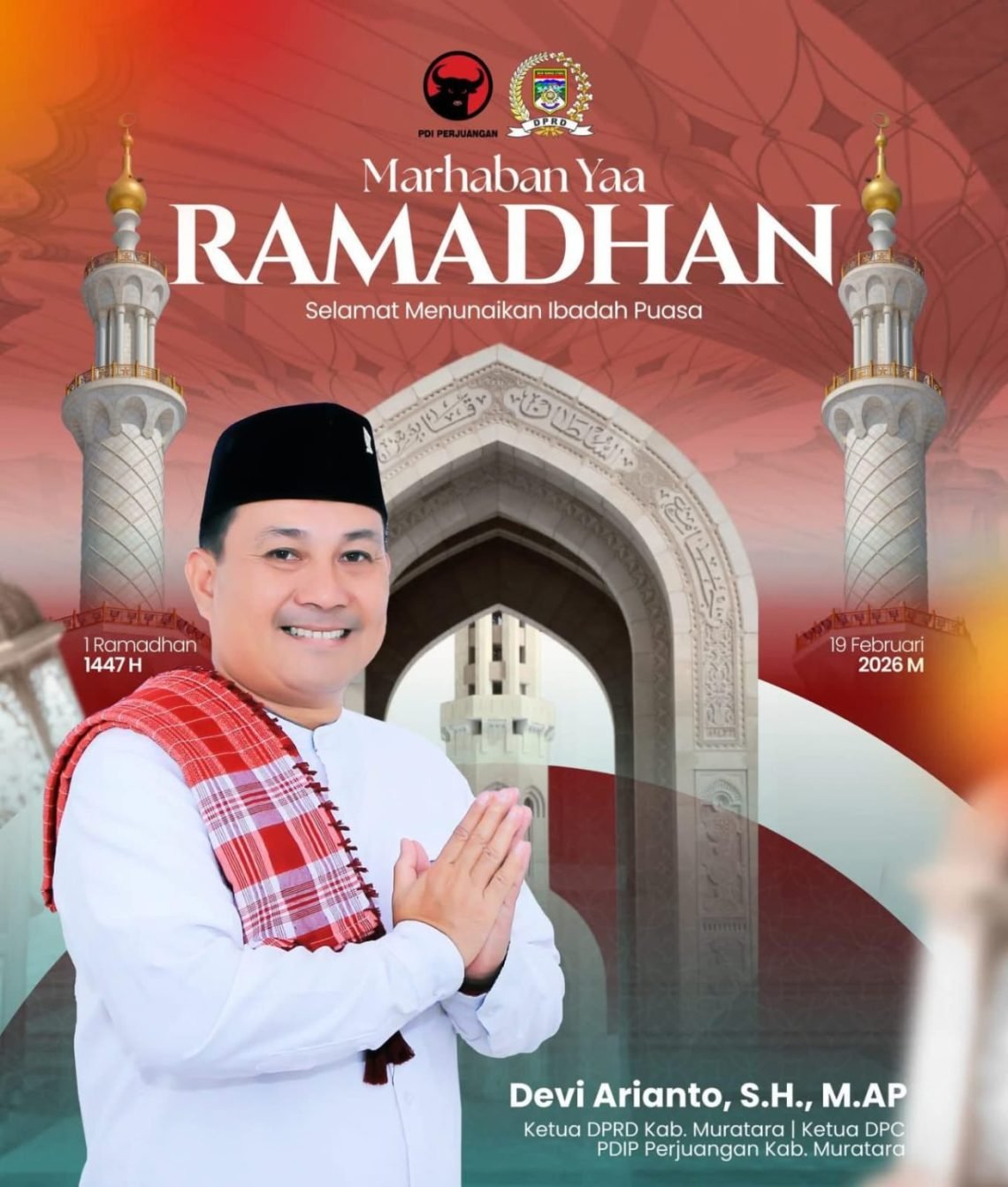 Muratara – Ketua DPRD Kabupaten Musi Rawas Utara (Muratara), Devi Arianto menyampaikan ucapan selamat menunaikan ibadah puasa Ramadan 1447 Hijriah tahun 2026 kepada seluruh masyarakat.